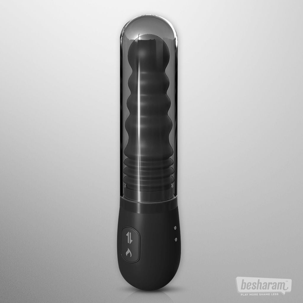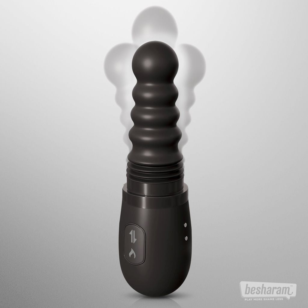 With 7 incredible patterns of vibration combined with thrusting and gyration, the pleasure possibilities are endless! The Gyrating Ass Thruster features a powerful vibrating bullet at the tip, a strong thrusting/gyrating piston powered by a rechargeable motor, and an internal heating core that warms the shaft up to 40°C (104°F). Multi-function button and heat button can be used separately or simultaneously to let you enjoy your erotic anal journey the way you want it.